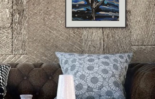 Quadratisches Bild Ein Winterbaum, beleuchtet vom blauen Licht des Mondes erscheint er schwarz und weiß, der Wind weht Schnee durch […]